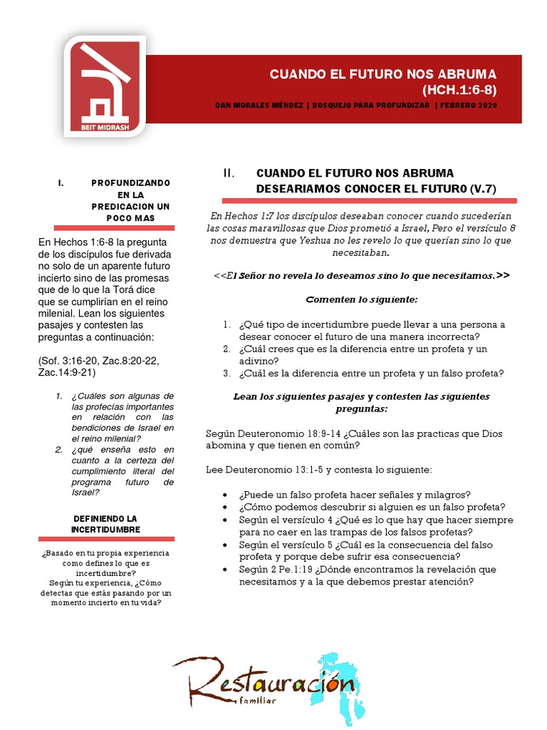Bosquejo Para Profundizar Beit Midrash Cuando El Futuro Nos Abruma Dmm Martir Profeta