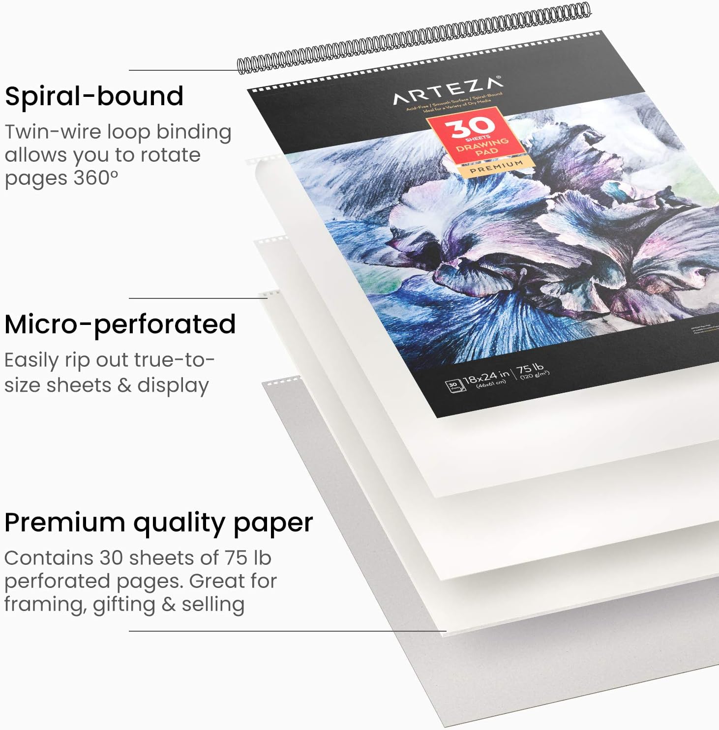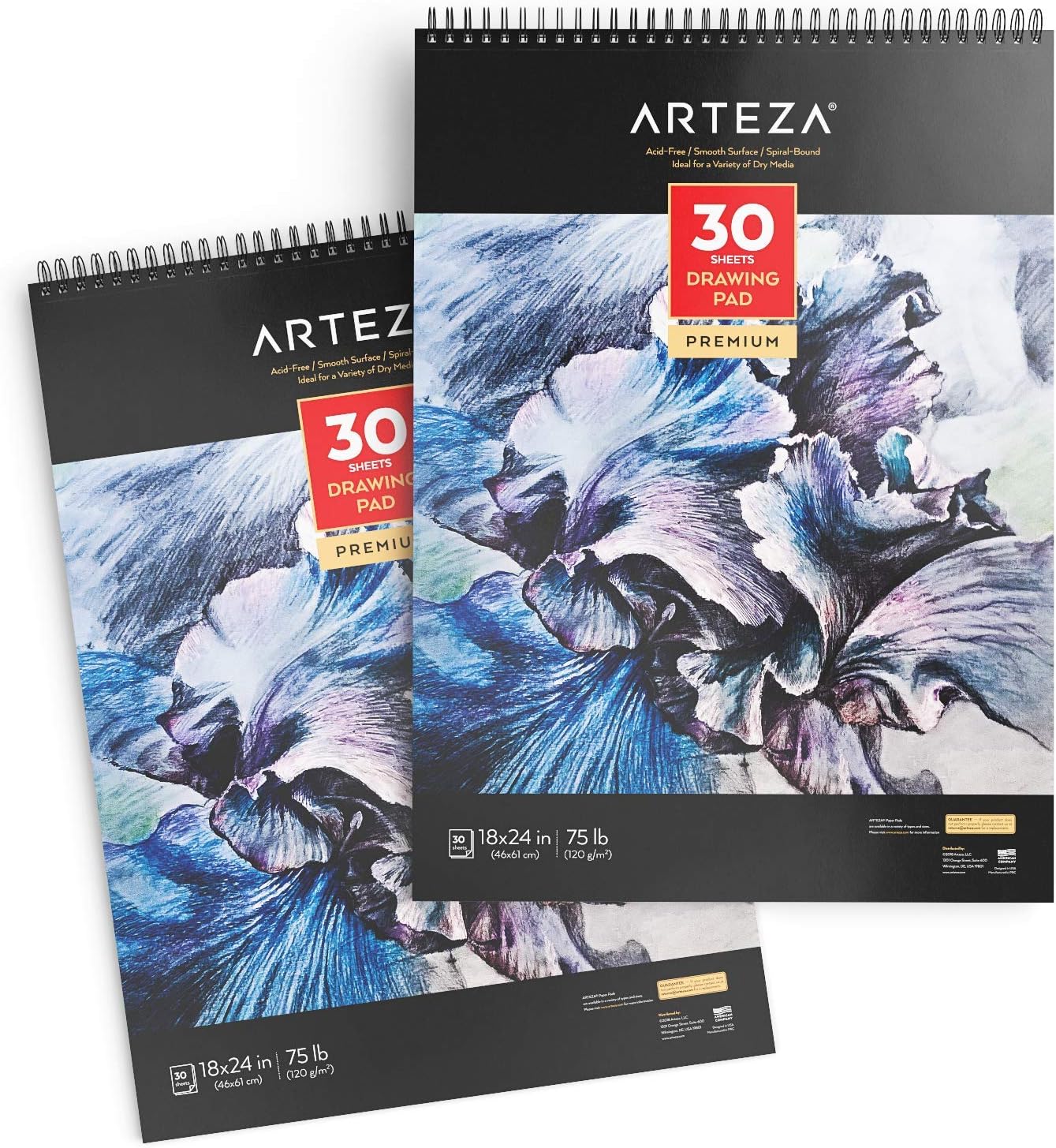 Arteza Cahier Dessin 46 X 61 Cm 2 Carnets De 60 Feuilles En Tout Carnet Croquis De 30 Pages Avec Micro Perforation Papier A Haut Grammage 120 G M2