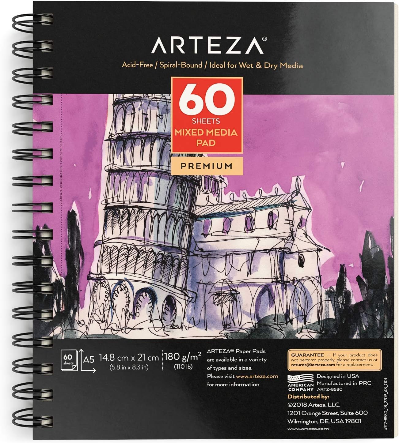 Carnet De Croquis Arteza A5 Pour Medias Mixtes 148x210 Mm 110lb 180gsm Sans Acide Micro Perfore Reliure Spirale Pour Medias Humides Et Secs Croquis Dessin Et Peinture Amazon Fr Fournitures De Bureau