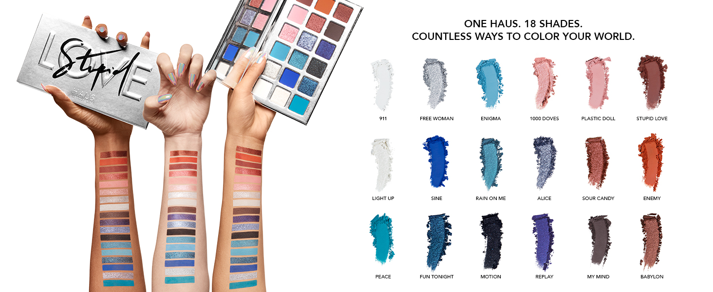 Amazon Com Haus Laboratories By Lady Gaga Stupid Love Eyeshadow Palette Limited Edition 18 Shade Palette Eye Makeup With Pigmented Matte Metallic Sparkle Multi Reflective Finishes Vegan Cruelty Free Premium Beauty